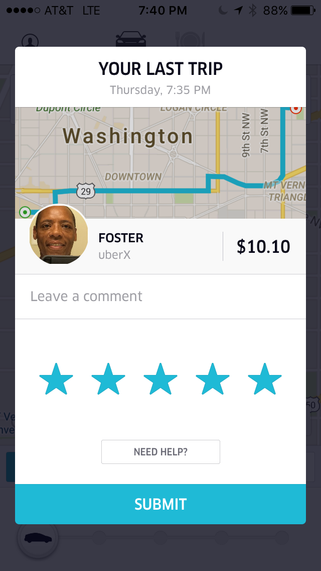 i) Conocer la identidad de tu chofer (cuyos antecedentes la compañía además revisa) antes de que llegue y ver su “puntuación” en el sistema. Si no te satisface tu nivel de calidad, puedes cancelar el viaje.