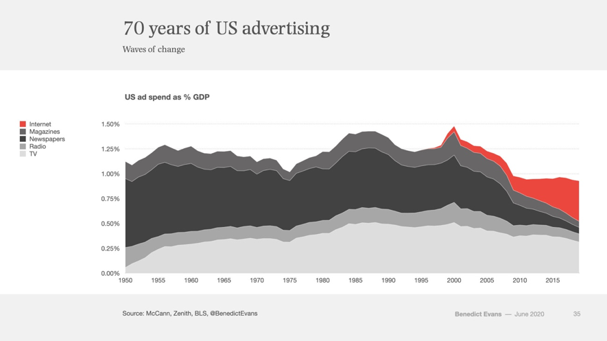 Fuente: EVANS, Benedict. News by the ton: 75 years of US advertising. 15 de junio de 2020. Disponible en: https://www.ben-evans.com/benedictevans/2020/6/14/75-years-of-us-advertising